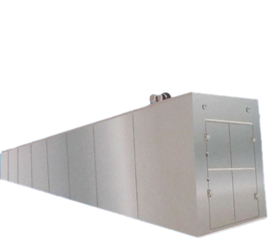 本機(jī)為隧道式多層干燥爐,爐內(nèi)干燥工作面分為10層,由10臺變頻調(diào)速電機(jī)分別控制,能理想的實現(xiàn)米雪餅餅坯的干燥。